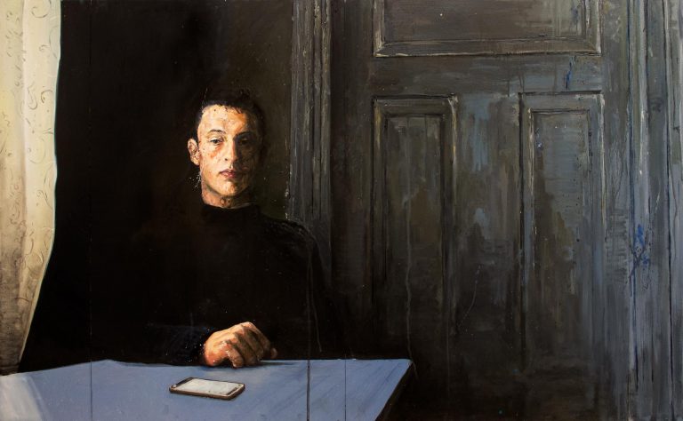 El gesto pictórico oscila entre la fidelidad al realismo y la libertad expresiva, recordando tanto a la intensidad de Golucho como a la contención de Antonio López. No se trata de un retrato en el sentido estricto, sino de una exploración de la pérdida y la vulnerabilidad: un cuerpo que resiste en su quietud mientras su reflejo se disuelve en la penumbra. En esa tensión entre figura y ausencia, entre presencia y desvanecimiento, la pintura encuentra su fuerza. La demencia aparece aquí no como un tema explícito, sino como atmósfera: un espacio suspendido donde la identidad se fragmenta, se duplica y se fuga hacia lo irreconocible.
